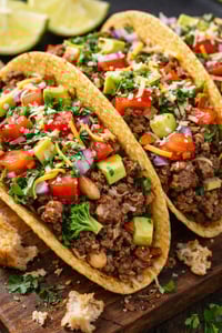 Flavorful seasoned beef tacos with fresh toppings and all the fixings.
