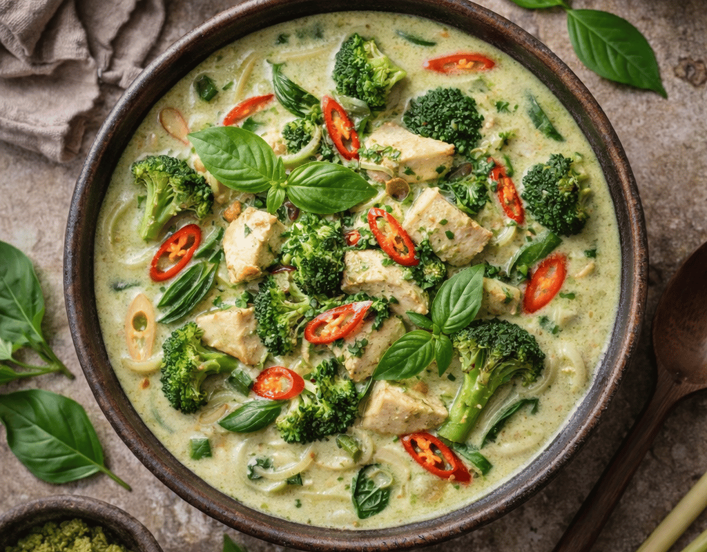 Fragrant and creamy Thai curry with tender chicken, vegetables, and aromatic herbs.